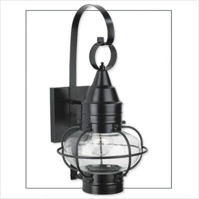 1513-BL-CL Finish: Black, Glass Type: Clear Pictured in black Features: -One light outdoor small wall lantern. -Classic Onion collection. -Available in Black, Bronze or Gun Metal finish. -Brass construction. -Shade shape: Oval. -Traditional and classic style. -Light direction: Down. -UL listed for wet location. -Made in USA. Specifications: -Accommodates (1) 100W incandescent Edison base bulb. -Overall dimensions: 16'' H x 9'' W.