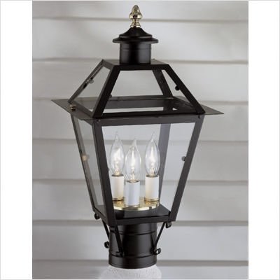 2234-BL-CL Features: -Three light outdoor post mount lantern. -Lexington collection. -Black finish. -Brass construction. -Shade construction: Clear glass. -Shade shape: Flat. -Traditional and classic style. -Light direction: Up. -UL listed for wet location. Specifications: -Accommodates (3) 60W incandescent Edison base bulb. -Overall dimensions: 17'' H x 9'' W.