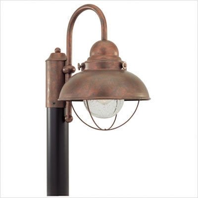 [***INCLUDED IN THIS SET: (1)Sebring One Light Outdoor Post Lantern in Weathered Copper, (1)Outdoor Lantern Post in Black, (1)Pedestal Mount in Black] Functionality and modernity come together to create this lantern made from quality craftsmanship. This outdoor lantern, finished in weathered copper with clear seeded glass provides a generous ring of illumination, lighting the way home in style. Fits 3'' Post Features: -Weathered copper finish -Clear seeded glass -Diameter: 11 1/4'' Width: 16Height: 15 3/4'' -1 Medium Base 100 W Max 120 Volts Lamp - Bulb(s) Not Included. Clear Bulb Recommended Options Include: -84'' black aluminum post (ladder rest included) -84'' black steel post (ladder rest included) -84'' black aluminum post with photo electric control (ladder rest included) -84'' black steel post with photo electric control (ladder rest included) -24 3/4'' black cast aluminum base -48 1/4'' black aluminum post -15 1/2'' black aluminum ladder rest -84'' black steel post -4'' black powdercoat pedestal mount -4'' weathered copper pedestal mount -photo electric control adaptor About Sea Gull Lighting Once again, Sea Gull Lighting finds itself at an important milestone in its history of excellence. With the fourth generation of the Hirsch and Solomon families joining the leadership team, Sea Gull Lighting continues the tradition, doing old-fashioned business in the world of ever-evolving fashions in lighting while being committed to upgrading the Sea Gull Lighting design portfolio, manufacturing techniques and markets served. Today, every Sea Gull Lighting fixture is conceived and built to match or exceed the latest tastes in lighting design as well as the newest building codes and construction techniques. Their lighting designers and trend watchers stay in step with current tastes and search out the unique. Never satisfied with a new milestone or industry achievement, they are constantly working on new components, new finishes and new ways to make lighting increase